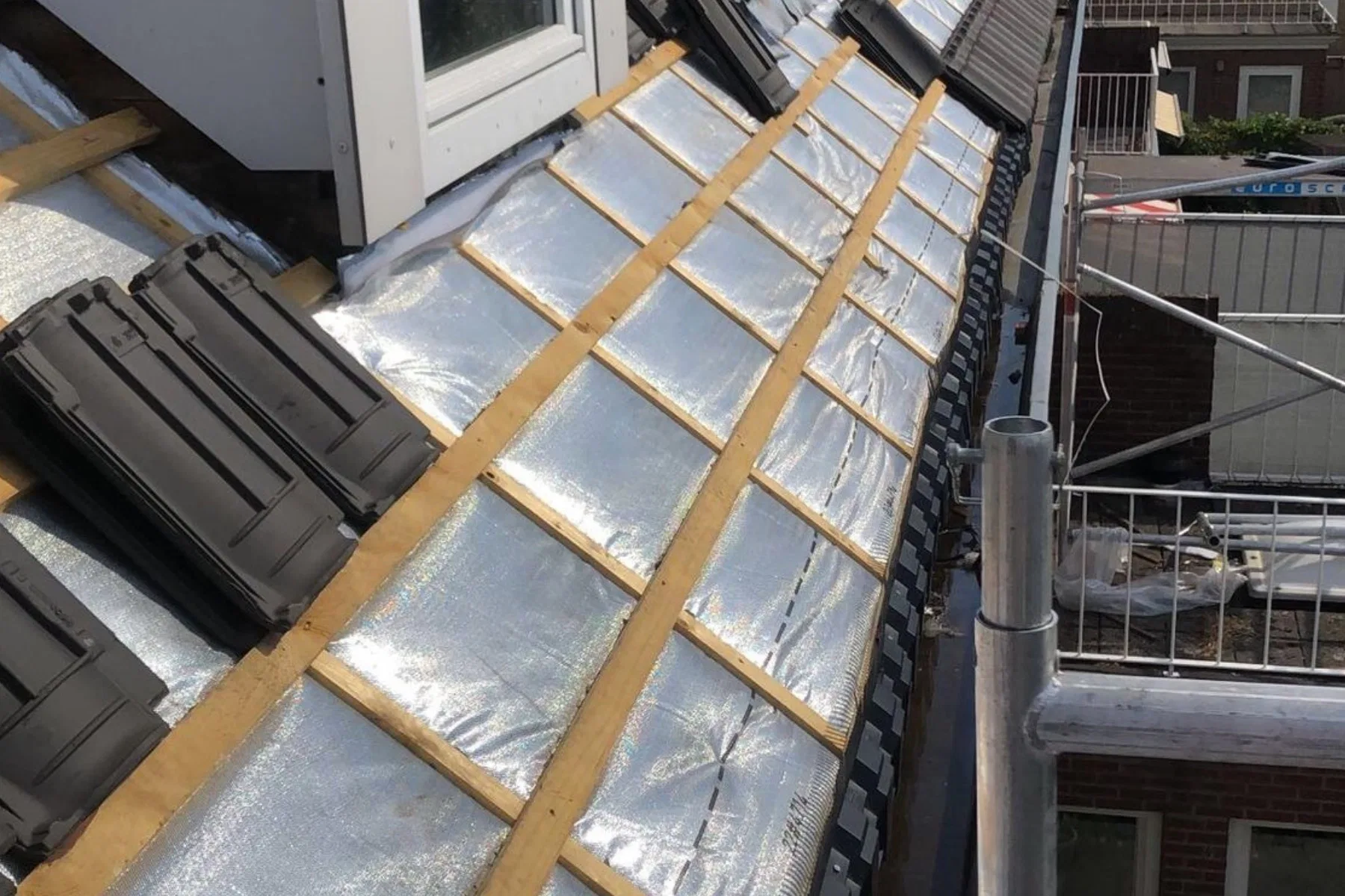 Stap 3: Herstel dakconstructie – vervangen of verstevigen van panlatten en dakfolie waar nodig.